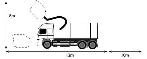 Tänk på att välja en uppställningsplats med stabilt underlag för lastväxlaren. Det ska finnas tillräckligt med utrymme vid containern så att lastbilen kan lyfta upp den. Det går fint att packa containern ända upp till kanten, så länge som eventuellt lock eller galler går att stänga.