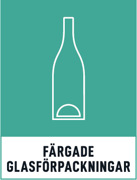 Glasflaskor och glasburkar. Färgade och ofärgade glasförpackningar återvinns var för sig. Återvunna material blir nya produkter! Glasförpackningar återvinns och blir till nya glasflaskor, glasburkar eller isoleringsmaterial