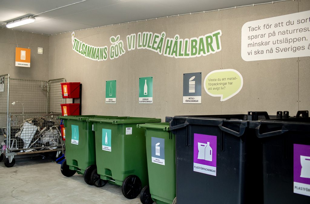 Luleå har 52 stycken återvinningsstationer. Här ska du endast göra dig av med utsorterade förpackningar. För mer information om var du hittar närmsta återvinningstation eller hur du gör en felanmälan läs mer här: Återvinningsstationer – Lumire